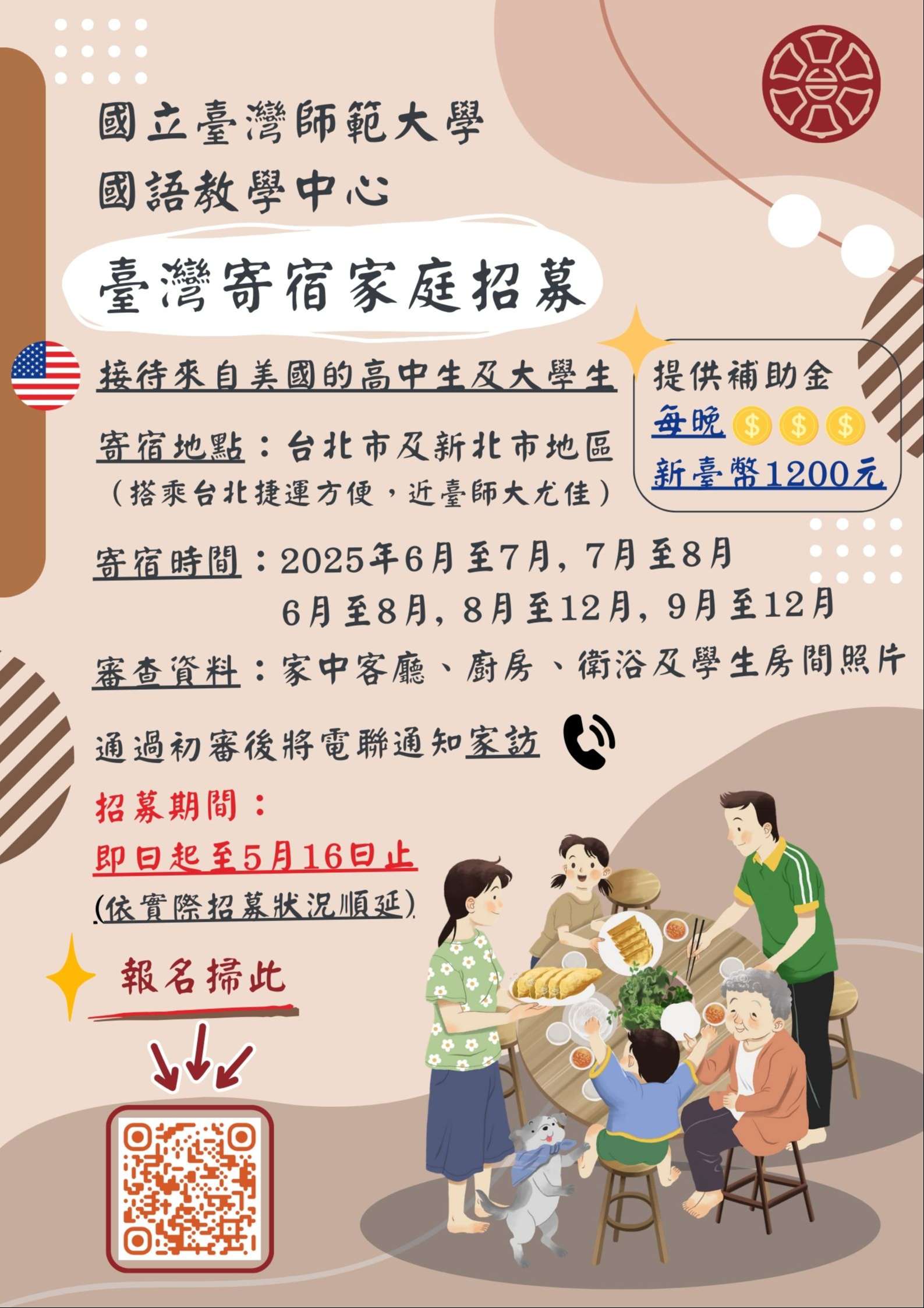 二、為促進美國高中生及大學生於在臺學習期間與當地臺灣人 進行文化交流、培養日常生活中運用華語的能力,顧特別尋找對認識美國文化、並願意敞開家門的臺灣家庭,以提供學員研習期間的寄宿接待,同時增進旨揭家庭與外國學 生認識不同風俗習慣與文化機會。