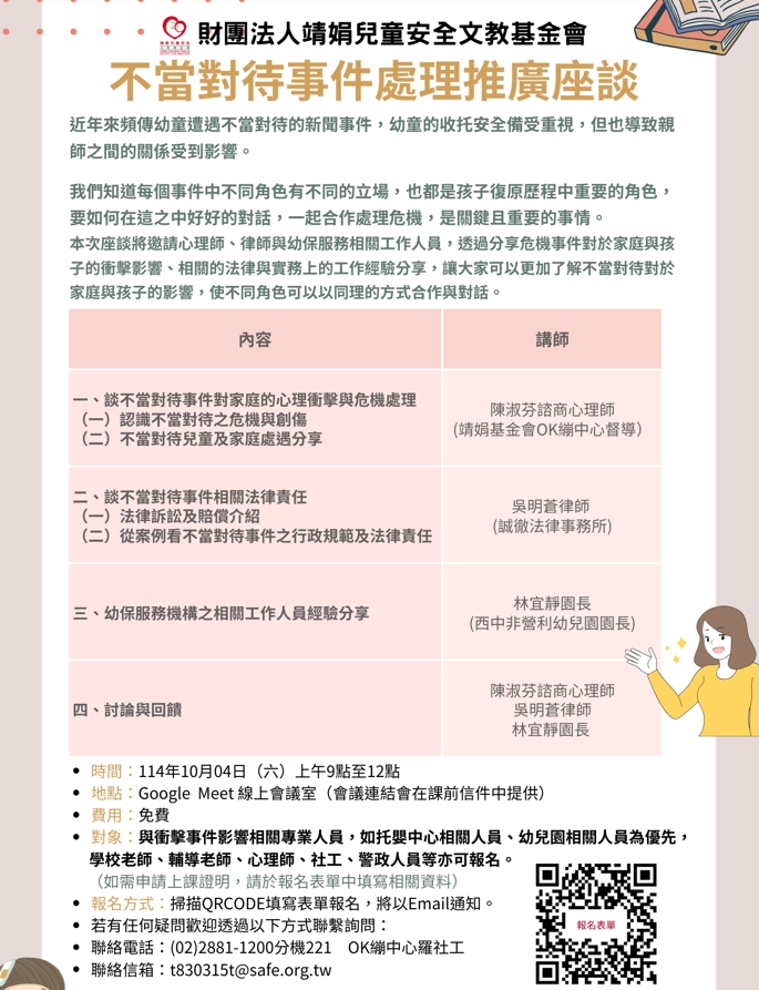 辦理「不當對待事件處理推廣座談」 資訊一案,