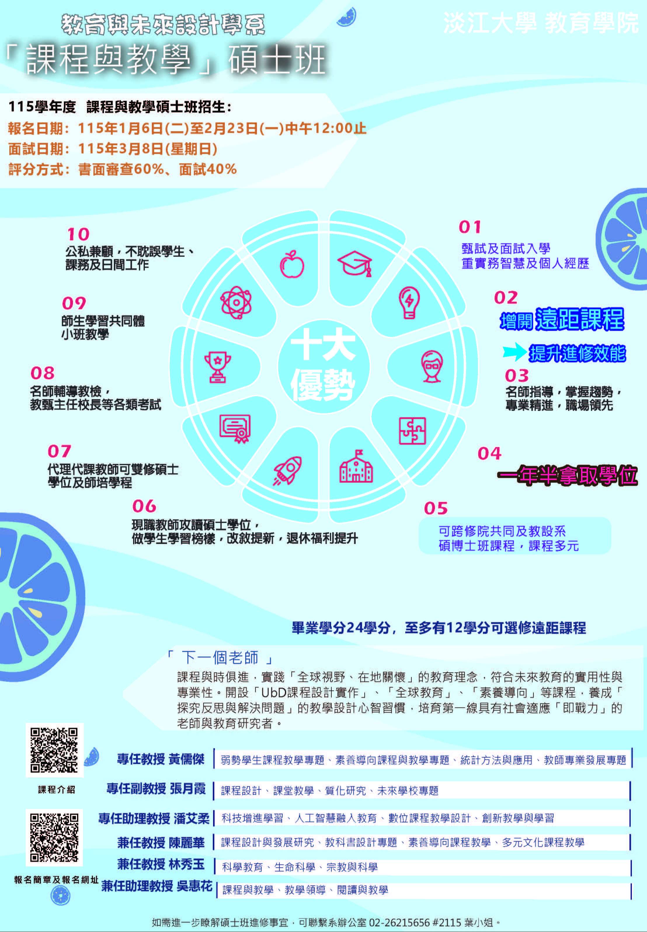 一、旨揭學系設有2個碩士班,分別為「教育與未來設計學系碩士班」及「課程與教學碩士班」,提供在職進修機會。